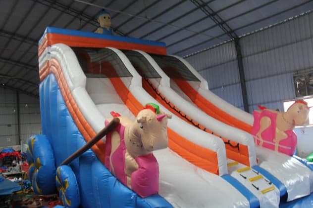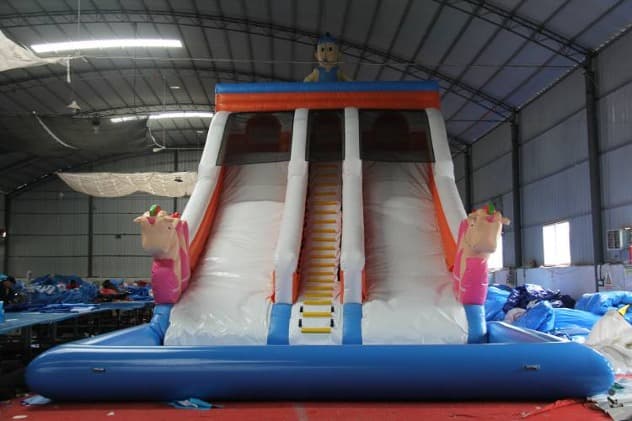 Inflatable Water Slide With Airtight Pool. This perfectly sized slide will fit in almost any back or front yard, and is to be a real hit among your customers. The inflatable water slide is available to purchase in a number of colorways, you will surely find one to fit your needs. Buying the water slides from Winson inflatables you are acquiring a high-quality professional inflatable attraction, designed safely and thoughtfully for ultimate fun. Winson inflatables,being on the market of inflatable attractions for over twenty years, is a dedicated manufacturer of qualitative inflatable attractions.
