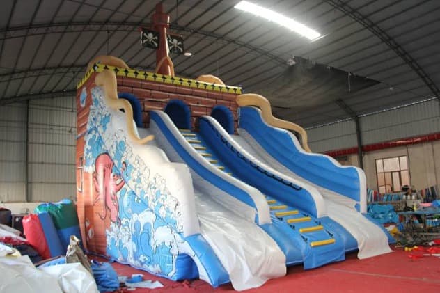 Blue Sea Wave Pirate Ship Water Slide. This perfectly sized slide will fit in almost any back or front yard, and is to be a real hit among your customers. The inflatable water slide is available to purchase in a number of colorways, you will surely find one to fit your needs. Buying the water slides from Winson inflatables you are acquiring a high-quality professional inflatable attraction, designed safely and thoughtfully for ultimate fun. Winson inflatables,being on the market of inflatable attractions for over twenty years, is a dedicated manufacturer of qualitative inflatable attractions.