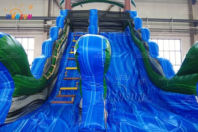 Tropical Blue Marble Inflatable Water Slide. This perfectly sized slide will fit in almost any back or front yard, and is to be a real hit among your customers. The inflatable water slide is available to purchase in a number of colorways, you will surely find one to fit your needs. Buying the water slides from Winson inflatables you are acquiring a high-quality professional inflatable attraction, designed safely and thoughtfully for ultimate fun. Winson inflatables,being on the market of inflatable attractions for over twenty years, is a dedicated manufacturer of qualitative inflatable attractions.