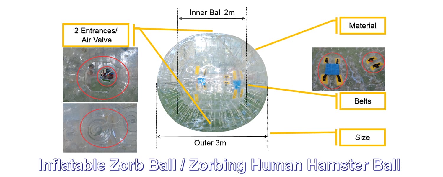 This Inflatable human ball with a diameter of 3m is the size that can be used by adults. Please contact us for other sizes.