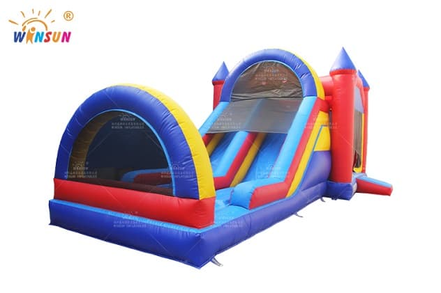 The Inflatable Jumping Castle dual lane Slide is available to purchase in a number of colorways, you will surely find one to fit your needs. Buying the bounce house from Winson inflatables you are acquiring a high-quality professional inflatable attraction, designed safely and thoughtfully for ultimate fun. Winson inflatables,being on the market of inflatable attractions for over twenty years, is a dedicated manufacturer of qualitative inflatable attractions.