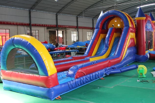 The Inflatable Moonwalk with Slip N Slide is available to purchase in a number of colorways, you will surely find one to fit your needs. Buying the bounce house from Winson inflatables you are acquiring a high-quality professional inflatable attraction, designed safely and thoughtfully for ultimate fun. Winson inflatables,being on the market of inflatable attractions for over twenty years, is a dedicated manufacturer of qualitative inflatable attractions.