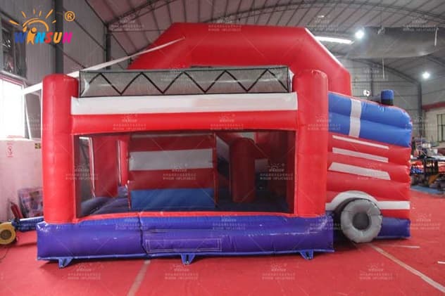 The Inflatable Jumping Castle with fire truck theme is available to purchase in a number of colorways, you will surely find one to fit your needs. Buying the bounce house from Winson inflatables you are acquiring a high-quality professional inflatable attraction, designed safely and thoughtfully for ultimate fun. Winson inflatables,being on the market of inflatable attractions for over twenty years, is a dedicated manufacturer of qualitative inflatable attractions.