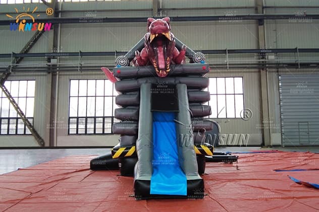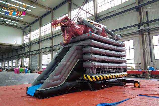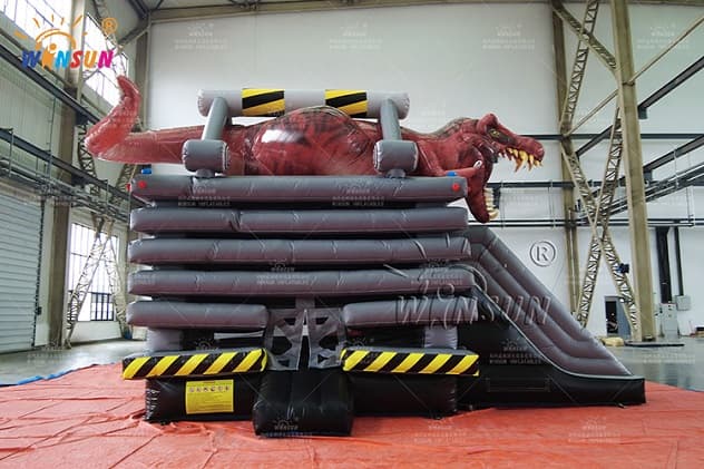 The Custom Inflatable Combo T-Rex Theme with bouncer and slide is available to purchase in a number of colorways, you will surely find one to fit your needs. Buying the bounce house from Winson inflatables you are acquiring a high-quality professional inflatable attraction, designed safely and thoughtfully for ultimate fun. Winson inflatables,being on the market of inflatable attractions for over twenty years, is a dedicated manufacturer of qualitative inflatable attractions.