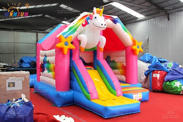 The Unicorn Theme Inflatable Slide is available to purchase in a number of colorways, you will surely find one to fit your needs. Buying the bounce house from Winson inflatables you are acquiring a high-quality professional inflatable attraction, designed safely and thoughtfully for ultimate fun. Winson inflatables,being on the market of inflatable attractions for over twenty years, is a dedicated manufacturer of qualitative inflatable attractions.