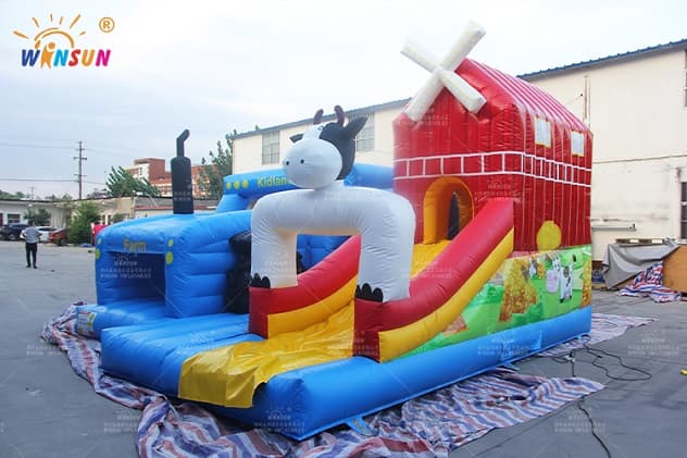 The Inflatable Farm Funland with Truck Bouncer is available to purchase in a number of colorways, you will surely find one to fit your needs. Buying the bounce house from Winson inflatables you are acquiring a high-quality professional inflatable attraction, designed safely and thoughtfully for ultimate fun. Winson inflatables,being on the market of inflatable attractions for over twenty years, is a dedicated manufacturer of qualitative inflatable attractions.