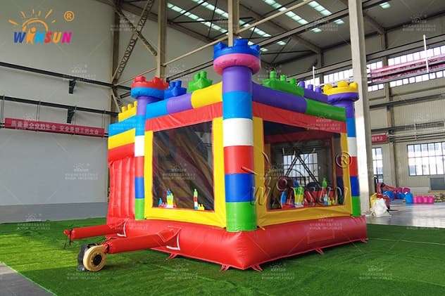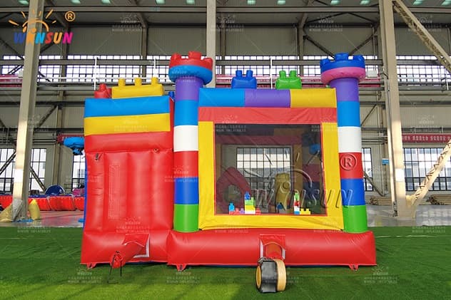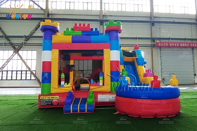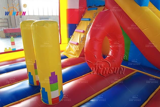 The Inflatable Lego Blocks Combo with pool has basketball hoop outside and inside with bouncer and obstacle course, and small pool on the end of slide part.The Inflatable Lego Blocks Combo with pool is available to purchase in a number of colorways, you will surely find one to fit your needs. Buying the bounce house from Winson inflatables you are acquiring a high-quality professional inflatable attraction, designed safely and thoughtfully for ultimate fun. Winson inflatables,being on the market of inflatable attractions for over twenty years, is a dedicated manufacturer of qualitative inflatable attractions.