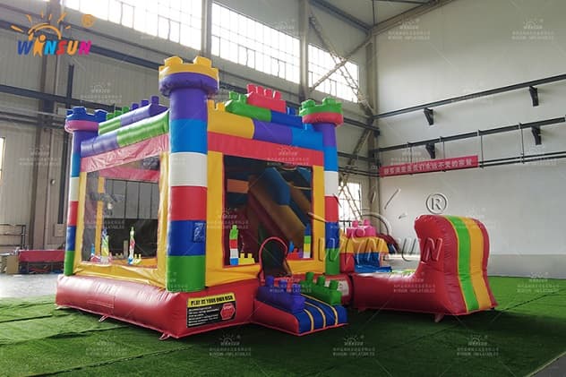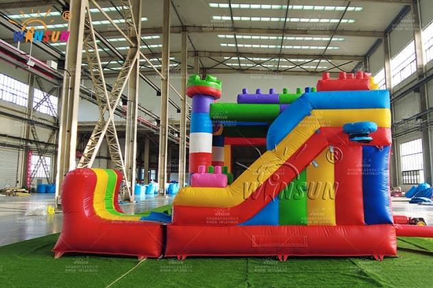 The Inflatable Lego Blocks Combo has basketball hoop outside and inside with bouncer and obstacle course, and small pool on the end of slide part.The Inflatable Lego Blocks Combo is available to purchase in a number of colorways, you will surely find one to fit your needs. Buying the bounce house from Winson inflatables you are acquiring a high-quality professional inflatable attraction, designed safely and thoughtfully for ultimate fun. Winson inflatables,being on the market of inflatable attractions for over twenty years, is a dedicated manufacturer of qualitative inflatable attractions.