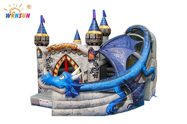 Maximum fun with a large surface for jumping and a very long curved slide,the Inflatable Castle Combo Dragon Age is available to purchase in a number of colorways, you will surely find one to fit your needs. Buying the bounce house from Winson inflatables you are acquiring a high-quality professional inflatable attraction, designed safely and thoughtfully for ultimate fun. Winson inflatables,being on the market of inflatable attractions for over twenty years, is a dedicated manufacturer of qualitative inflatable attractions.