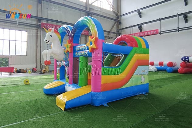 The Popular Unicorn Inflatable Jumping Combo is available to purchase in a number of colorways, you will surely find one to fit your needs. Buying the bounce house from Winson inflatables you are acquiring a high-quality professional inflatable attraction, designed safely and thoughtfully for ultimate fun. Winson inflatables,being on the market of inflatable attractions for over twenty years, is a dedicated manufacturer of qualitative inflatable attractions.