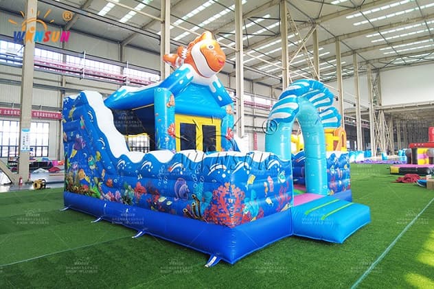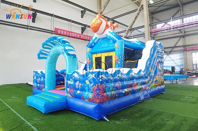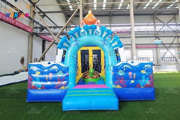 The Inflatable Ocean Park Combo is available to purchase in a number of colorways, you will surely find one to fit your needs. Buying the bounce house from Winson inflatables you are acquiring a high-quality professional inflatable attraction, designed safely and thoughtfully for ultimate fun. Winson inflatables,being on the market of inflatable attractions for over twenty years, is a dedicated manufacturer of qualitative inflatable attractions.