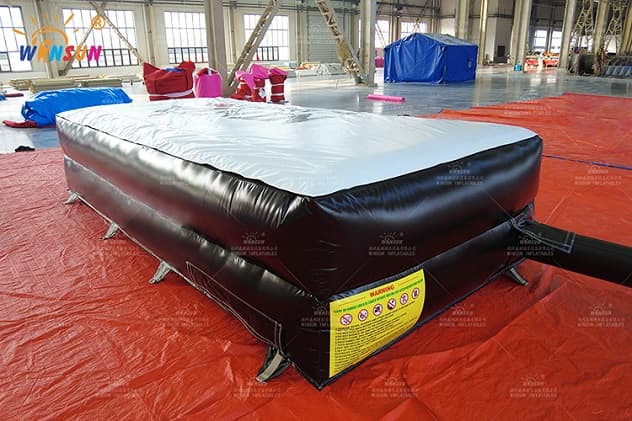 Multi-chamber air bag beneath dual-chamber top landing wedge. Landing airbags, an inflatable chamber angle can be customized according to your requirements and are widely used in FMX, BMX, MTB and other fields.