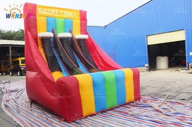 Inflatable Basketball Game with triple hoops.High-quality sponge card slot, standard lever, perfect 45-degree angle inflatable venue! Crazy Inflatable Climbing Slide, the championship wall is waiting for you to challenge!