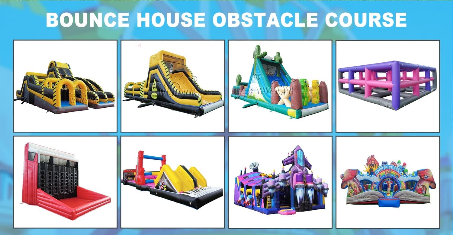 Inflatable obstacle courses consist of various inflatable structures that participants must pass through, over, or under to reach the finish line. Inflatable obstacle courses come in all shapes, sizes and themes. Some may resemble traditional obstacle courses, with walls and tunnels to climb through and slides to slide down. There are also more specific themes, such as jungle adventures, sports-themed challenges, and even pirate ship designs.