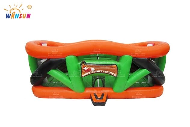 This inflatable multisport stadium has everything you can ask for in an inflatable ride. It is designed with safety and quality in mind for riders to enjoy worry-free.Participants will definitely enjoy the space available to bounce around. The basketball hoops hang high above the spacious soccer nets, allowing for exciting play. The volleyball net in the center of the ride is removable, which allows for use of this incredible game as a dodge-ball arena or boxing ring.