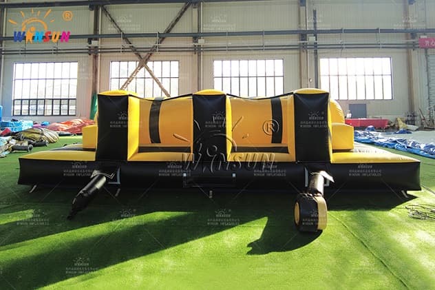 Inflatable obstacle courses consist of various inflatable structures that participants must pass through, over, or under to reach the finish line. Inflatable obstacle courses come in all shapes, sizes and themes. Some may resemble traditional obstacle courses, with walls and tunnels to climb through and slides to slide down. There are also more specific themes, such as jungle adventures, sports-themed challenges, and even pirate ship designs.