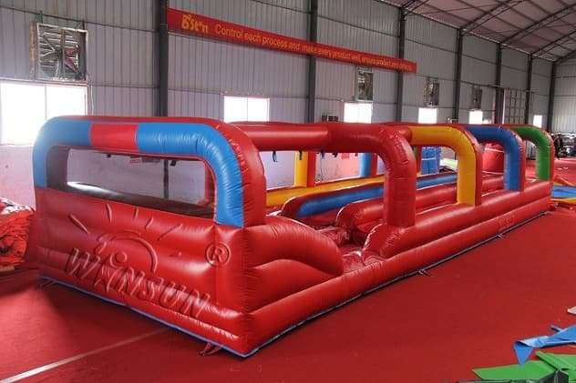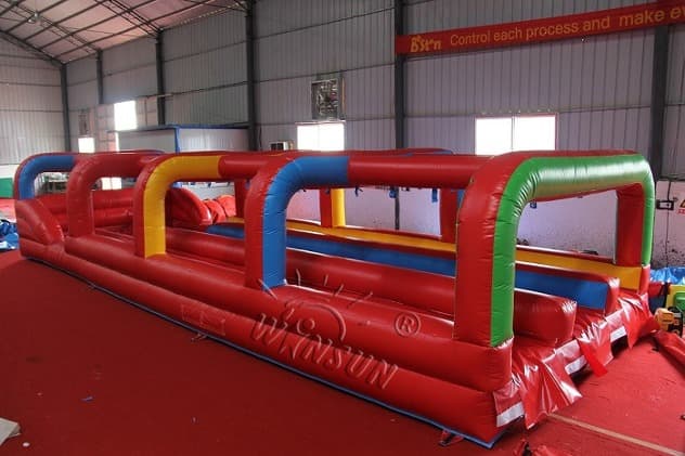 Inflatable Three Lane Slip And Slide. This perfectly sized slide will fit in almost any back or front yard, and is to be a real hit among your customers. The inflatable water slide is available to purchase in a number of colorways, you will surely find one to fit your needs. Buying the water slides from Winson inflatables you are acquiring a high-quality professional inflatable attraction, designed safely and thoughtfully for ultimate fun. Winson inflatables,being on the market of inflatable attractions for over twenty years, is a dedicated manufacturer of qualitative inflatable attractions.
