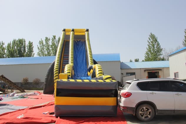 Inflatable Nuclear Dropkick Slide. This perfectly sized slide will fit in almost any back or front yard, and is to be a real hit among your customers. The inflatable water slide is available to purchase in a number of colorways, you will surely find one to fit your needs. Buying the water slides from Winson inflatables you are acquiring a high-quality professional inflatable attraction, designed safely and thoughtfully for ultimate fun. Winson inflatables,being on the market of inflatable attractions for over twenty years, is a dedicated manufacturer of qualitative inflatable attractions.