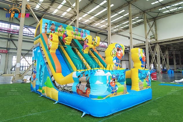 The inflatable dry slide manufactured by Winson is usually made of high-quality environmentally friendly PVC mesh cloth. It is formed by inflating, with a soft surface, high safety factor, and good wear resistance, stability and durability. Reasonably designed and well-made, it has good wind resistance and is not prone to deformation, cracking or air leakage. In addition, the inflatable water slide is equipped with safety guardrails and safety ropes on the equipment to avoid accidental falls or injuries during play.