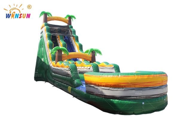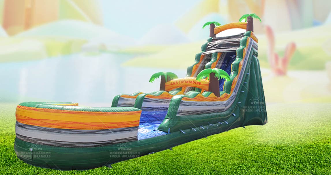 The inflatable water slide manufactured by Winson is usually made of high-quality environmentally friendly PVC mesh cloth. It is formed by inflating, with a soft surface, high safety factor, and good wear resistance, stability and durability. Reasonably designed and well-made, it has good wind resistance and is not prone to deformation, cracking or air leakage. In addition, the inflatable water slide is equipped with safety guardrails and safety ropes on the equipment to avoid accidental falls or injuries during play.