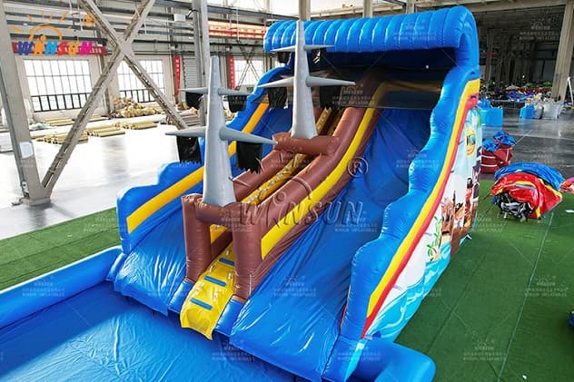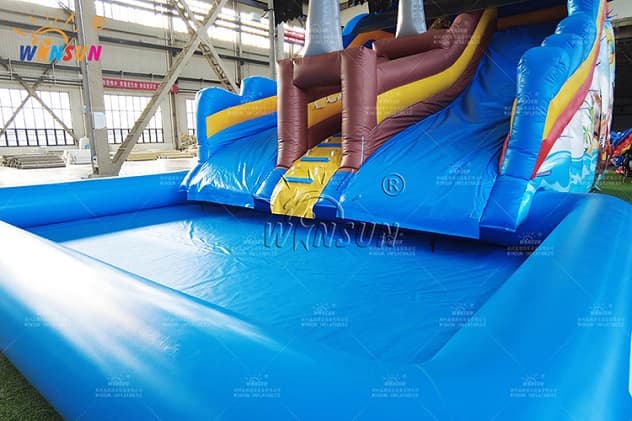 The inflatable water slide manufactured by Winson is usually made of high-quality environmentally friendly PVC mesh cloth. It is formed by inflating, with a soft surface, high safety factor, and good wear resistance, stability and durability. Reasonably designed and well-made, it has good wind resistance and is not prone to deformation, cracking or air leakage. In addition, the inflatable water slide is equipped with safety guardrails and safety ropes on the equipment to avoid accidental falls or injuries during play.